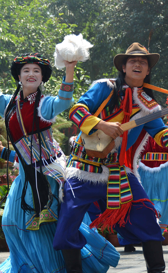 云南省境內的藏族人口約12萬,主要聚居在云南迪慶藏族自治州,少量散居于麗江、貢山、永勝、寧蒗等縣。藏族信奉藏傳佛教,白色被藏族視為純潔神圣的象征。藏族村占地21畝,村內有大小中甸地區的坡頂民居和德欽地區的雕樓式平頂民居。莊嚴神圣的藏傳佛寺,壯觀的迎賓白塔,象征吉祥和睦的“白牦牛”雕塑與獨具風格的藏式建筑互為映襯,相得益彰。藏族主要節日有:藏歷年、丹巴日古(七月夏游節)、昂曲節、格冬節等;主要禮節是...